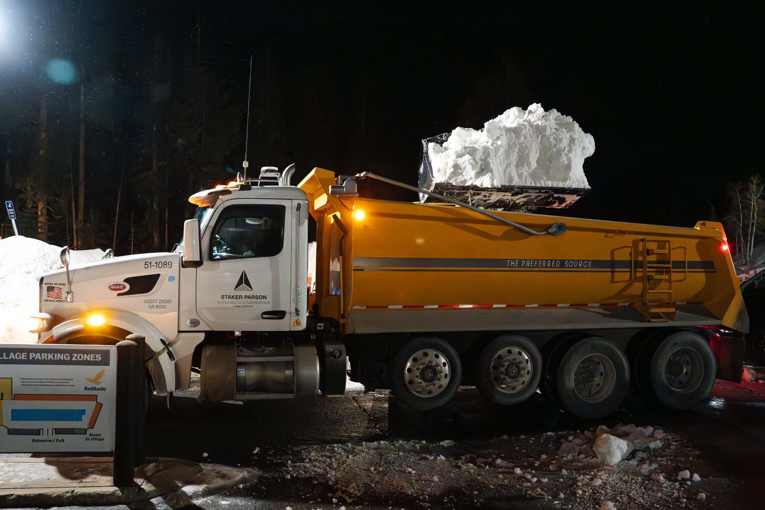 Our crews worked Thursday night into early Friday morning (6 PM–5 AM), with eight trucks transporting 39 loads of snow from Solitude Mountain Resort to West Temple. With rain and winds threatening the course, organizers requested more snow on Friday while shaping the course. At 4 AM on Saturday morning, five trucks delivered an additional 10 loads, bringing the total to 49 loads of snow—surpassing last year’s haul of 34 loads.