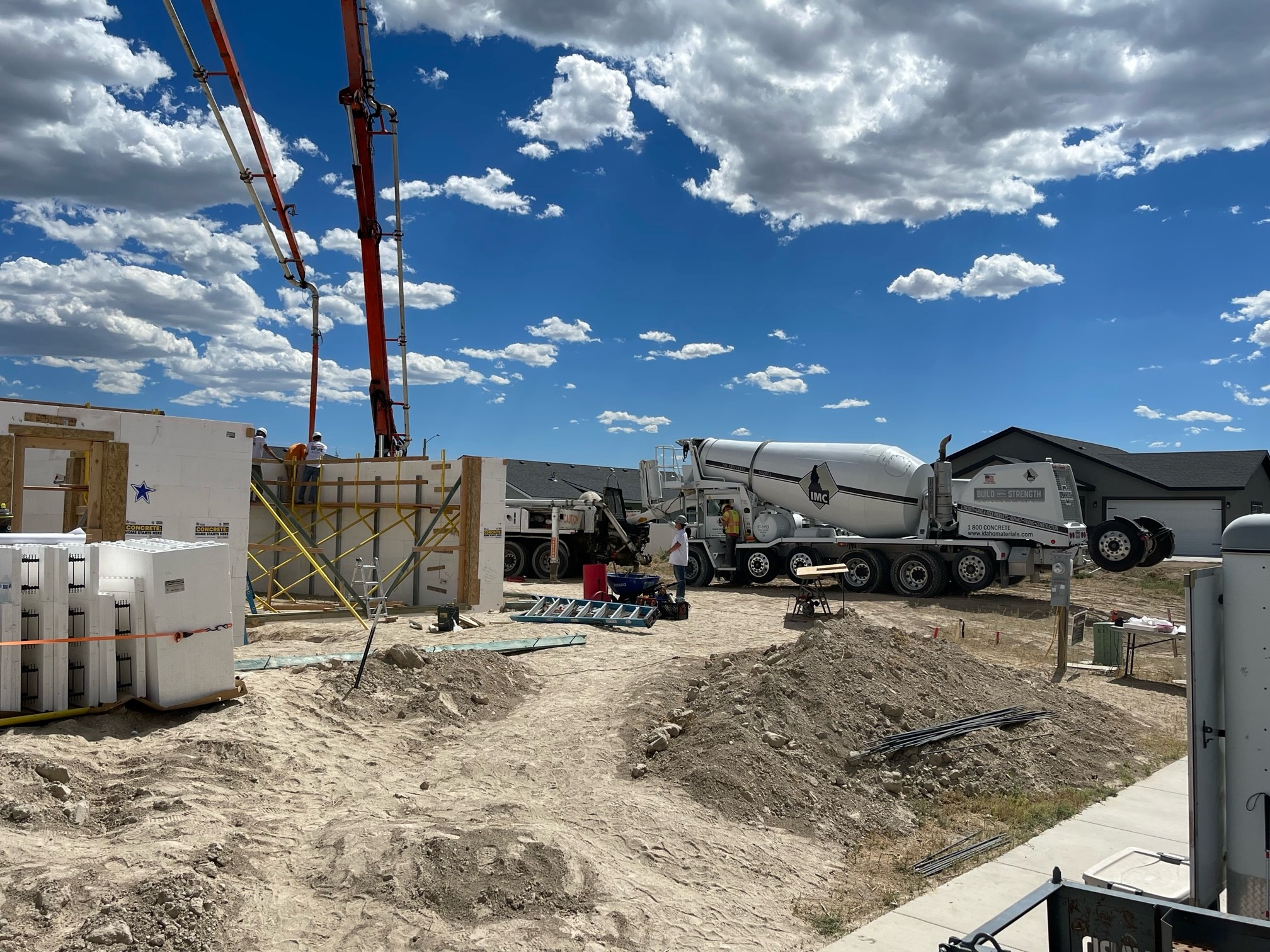 As part of their 2023 housing project in the Magic Valley, a home was constructed and donated to a chosen family upon completion. The organization contacted Idaho Materials and Construction to discuss ways of helping with the construction materials for their 2023 home. As part of IMC’s participation, our organization donated approximately 75 cubic yards of ready-mix concrete for the home’s footing and fox block wall system, which accounted for the total amount of concrete donated for the entire project. The home, located in Kimberly, Idaho, is part of a subdivision that Idaho Materials and Construction completed utilities and roadwork for in 2021 for a separate developer.