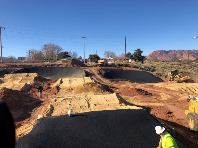 Western Rock Products Aggregates donated about 500 tons of fines material from our Atkin location. The material needed to meet gradation specifications and had a unique plasticity requirement to bind and retain while under the BMX bike racing conditions. WRP met the criteria with some blending, and the owners and designer said the material was ideal for the conditions and has held up very well. Western Rock was contracted to pave the BMX track banking turns with Hot Mix Asphalt. The banks were steep and required creative methods to place the asphalt and achieve compaction. WRP placed approximately 280 tons of asphalt in the bank turns to achieve the customers’ design.